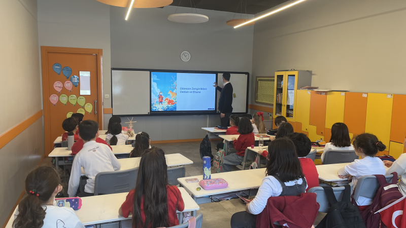 Ocak ve şubat aylarında 3. sınıflarla “Dilimizin Zenginlikleri Projesi” kapsamında “Türk Efsaneleri ve Türk Destanları” üzerine çalışmalar gerçekleştirildi. Sınıflarda konuyla ilgili bilgilendirici sunumlar paylaşıldı. Türk kültürünün sözlü edebiyat mirasını yansıtan örnek metinler öğrencilerle okundu ve değerlendirildi.