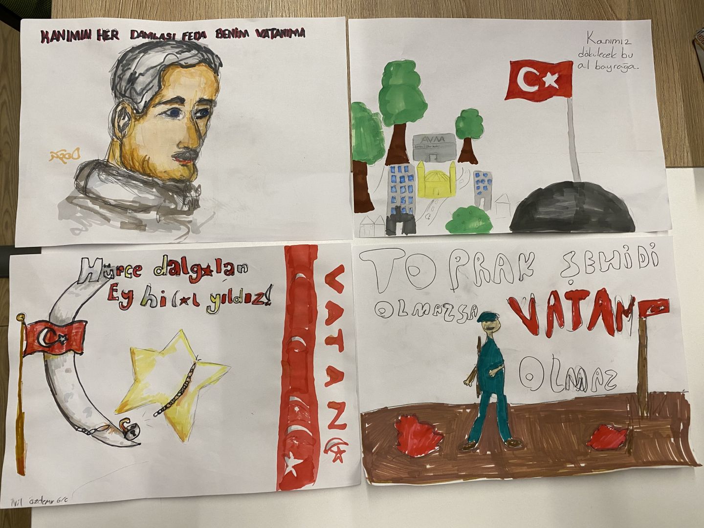 Tüm kampüslerimizde ortaokul öğrencilerimizin İstiklâl Marşı’nın değerini ve anlamını içselleştirmesi amacıyla mart ayında düzenlenen etkinlikte 4 ve 6. sınıf öğrencilerimiz, İstiklâl Marşı’ndan seçtikleri kelimelerle “vatan sevgisinin önemi” konulu cümleler kurdu ve bu cümleleri içeren afişler hazırladı. Renkli ve dikkat çekici afişler, okulun çeşitli panolarında sergilenerek büyük beğeni topladı.