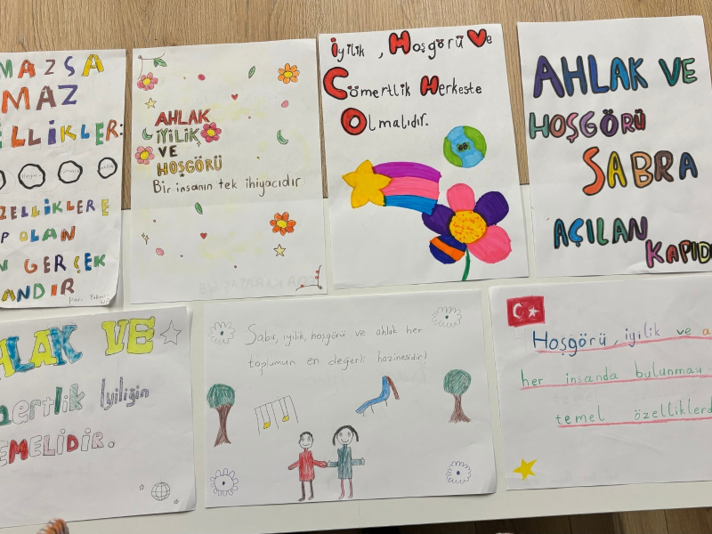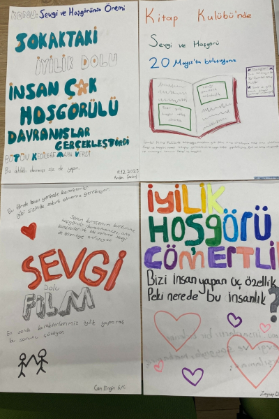Kasım ayında, Türkçenin zenginliğini ve kültürel değerlerini öğrencilere kazandırmaya yönelik olarak 5 ve 6. sınıf öğrencilerimiz, Türk edebiyatının önemli isimlerinden Yunus Emre’nin seçilen şiirlerini okuyarak sevgi, hoşgörü ve insanlık temasını öğrenme fırsatı yakaladı. Öğrenciler okudukları şiirlerden en az üç kelimenin yer aldığı “Sevgi ve Hoşgörünün Önemi” konulu bir afiş oluşturdu. Okunan şiirlerden yola çıkılarak yapılan bu çalışmalar, öğrencilerin kendilerini ifade etme becerilerine katkı sağladı.